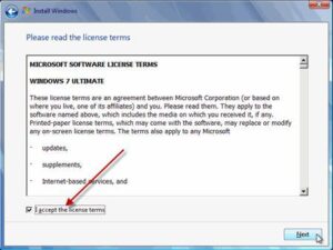 Bước 3:Bạn tích vào ô “I accept the license tems” để chấp thuận các điều khoản của Microsoft.